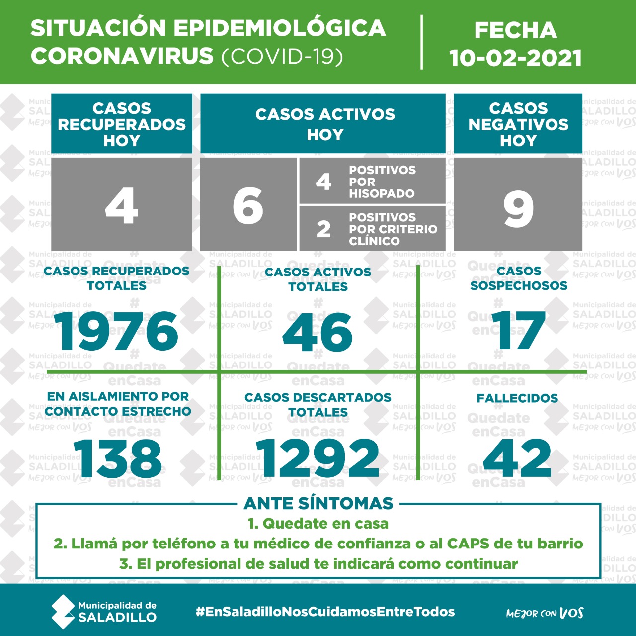 SITUACIÓN EPIDEMIOLÓGICA EN SALADILLO AL 10/02/2021