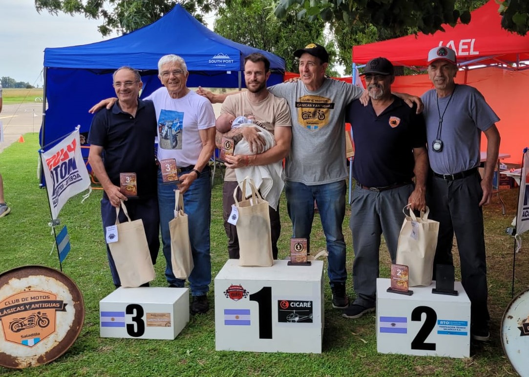 Luego de suspenderse en dos oportunidades debido al mal tiempo, se pudo realizar el Séptimo Rally de Regularidad para Motos Antiguas en Saladillo. Los ganadores resultaron los locales, Osvaldo Debiasi (DKW150) y Osvaldo Debiasi hijo (Gilera 150), quienes subieron al primer escalón del podio con un tiempo de 46 minutos. Los escoltaron los alvearenses, Miguel Caram (Gilera 150) y Tomas Wallace (Puma 125) con 46m10s y terceros arribaron Mario Álvarez (Alvear, Zanella Cecatto) y Héctor Cattani (Pergamino, Honda Econo), con 46m18segundos. El tiempo ideal para recorrer los casi 33 kilómetros era de 45m28 segundos.