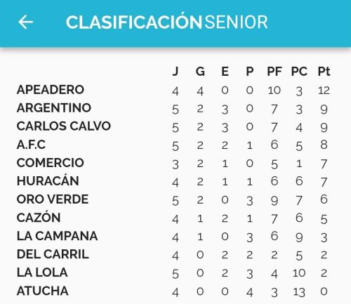 Argentino y Carlos Calvo se encuentran como escoltas e invictos también, pero con juegos empatados y un encuentro más que Apeadero.