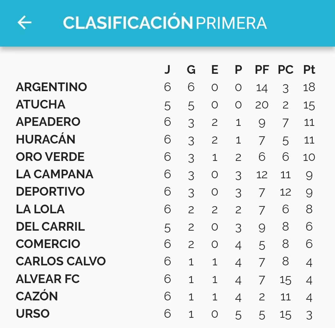 Se completó la sexta fecha del Torneo Apertura 2026. Lo destacado fue la igualdad entre Huracán y Oro Verde, en un partido vibrante donde finalizaron igualados en 2. Argentino que ya habia ganado el viernes, se ubica en la punta en soledad, debido a que Atucha postergó su partido ante Defensores de Del Carril.
