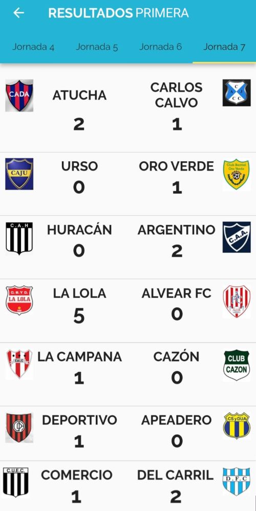 Desarrollada la séptima fecha del Torneo Apertura de Primera División, Argentino lidera la tabla de posiciones con puntaje ideal, 7 jugados, 7 ganados. De todas maneras hay que esperar que Atucha juegue su encuentro postergado con Del Carril, para saber su ubicación. En tercer lugar se ubica Oro Verde, quien viene de ganarle a Urso por 1 a 0. Por su parte La Campana, quien se esta convirtiendo en el equipo sensación de este torneo se coloca en la cuarta posición, al ganarle a Cazón por la mínima diferencia.