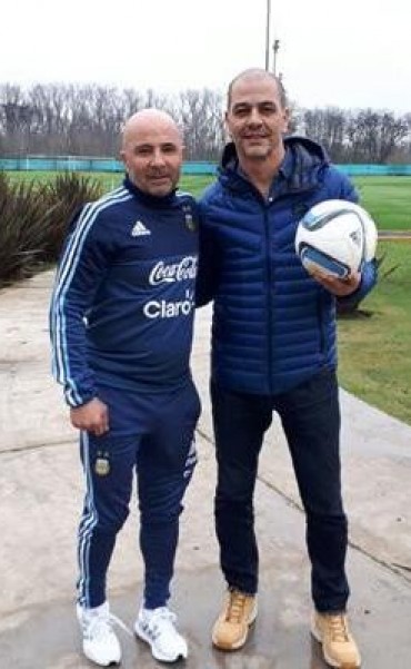 El entrenador del seleccionado argentino de fútbol, Jorge Sampaoli, recibió en el predio de la AFA en Ezeiza a Sergio Hernández.
