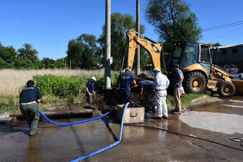 SALOMÓN OBSERVÓ LA REPARACIÓN DE LA ROTURA DE UN CAÑO MAESTRO EN BOZÁN Y VIALE