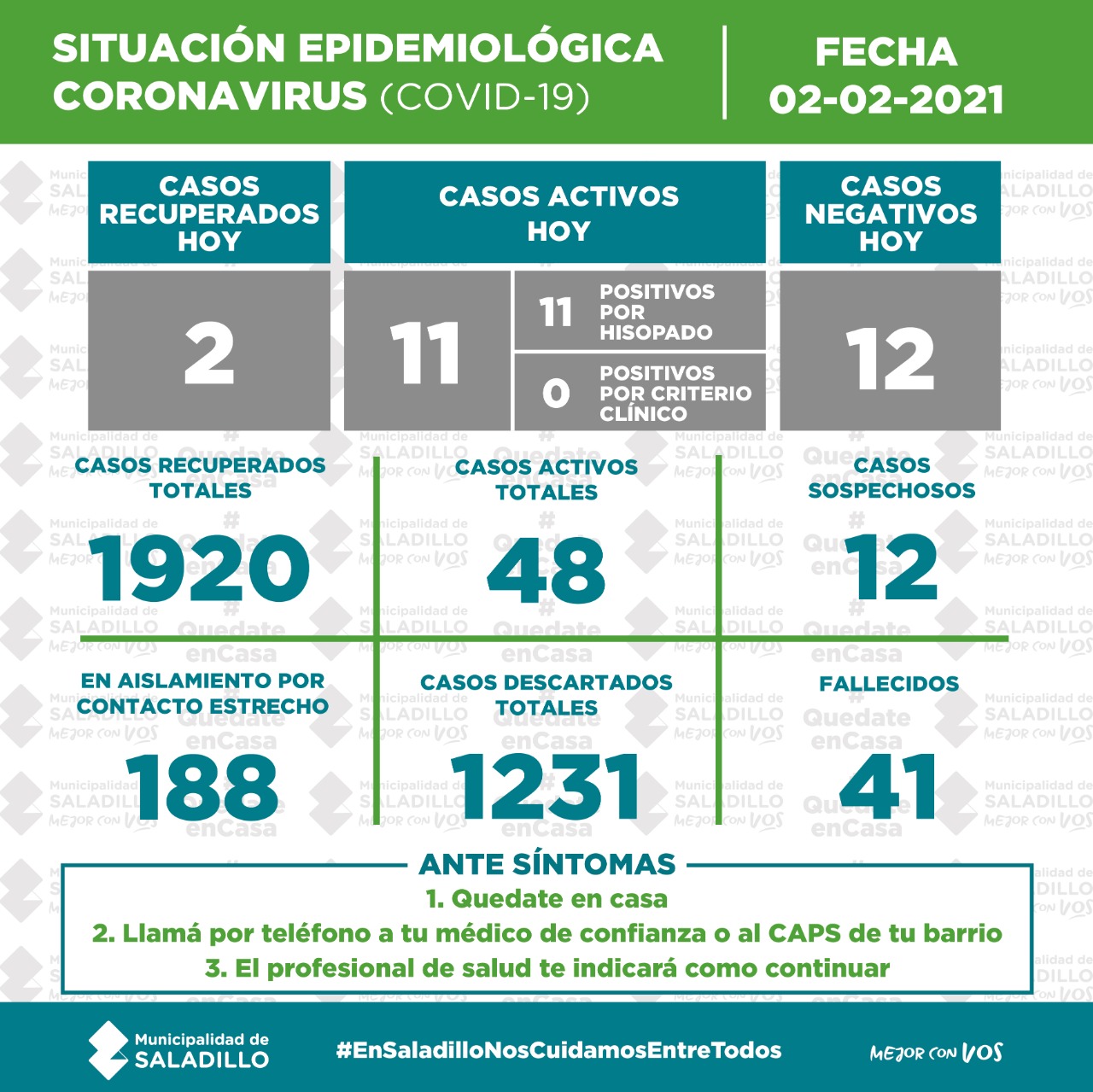 SITUACIÓN EPIDEMIOLÓGICA EN SALADILLO AL 02/02/2021