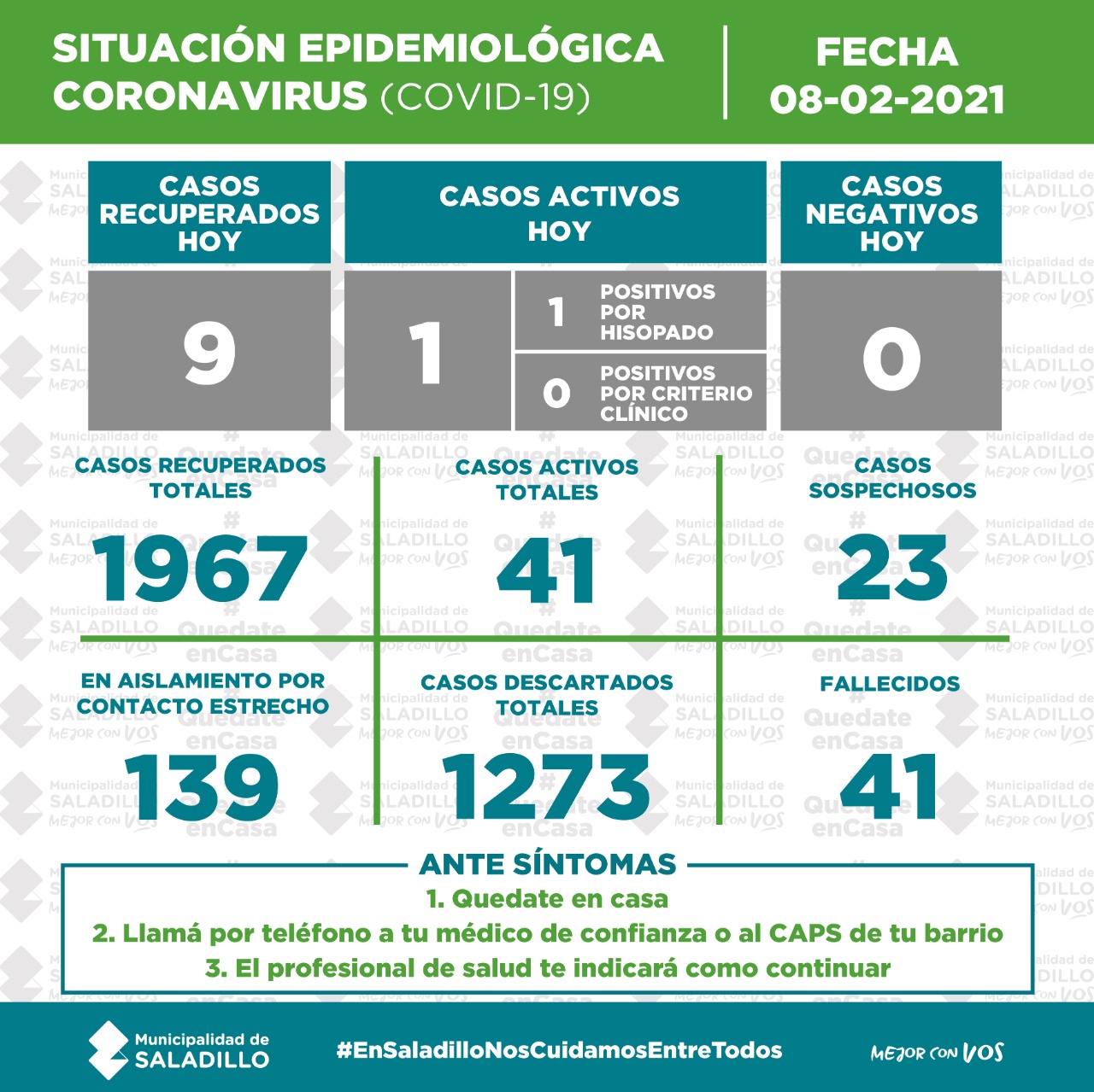 SITUACIÓN EPIDEMIOLÓGICA EN SALADILLO AL 08/02/2021