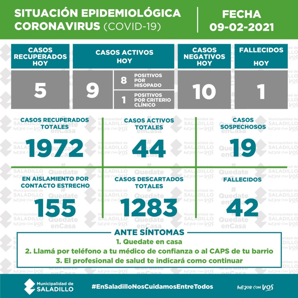 SITUACIÓN EPIDEMIOLÓGICA EN SALADILLO AL 09/02/2021