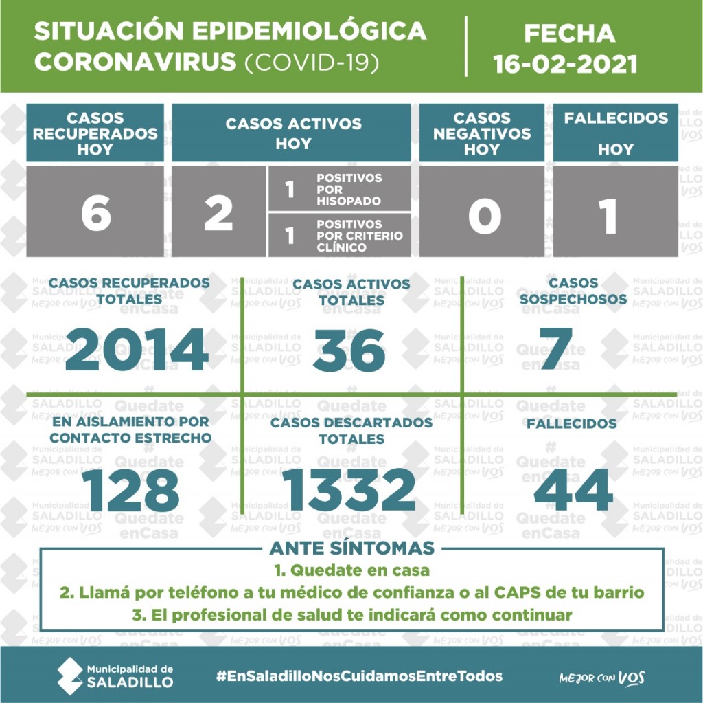 SITUACIÓN EPIDEMIOLÓGICA EN SALADILLO AL 16/02/2021