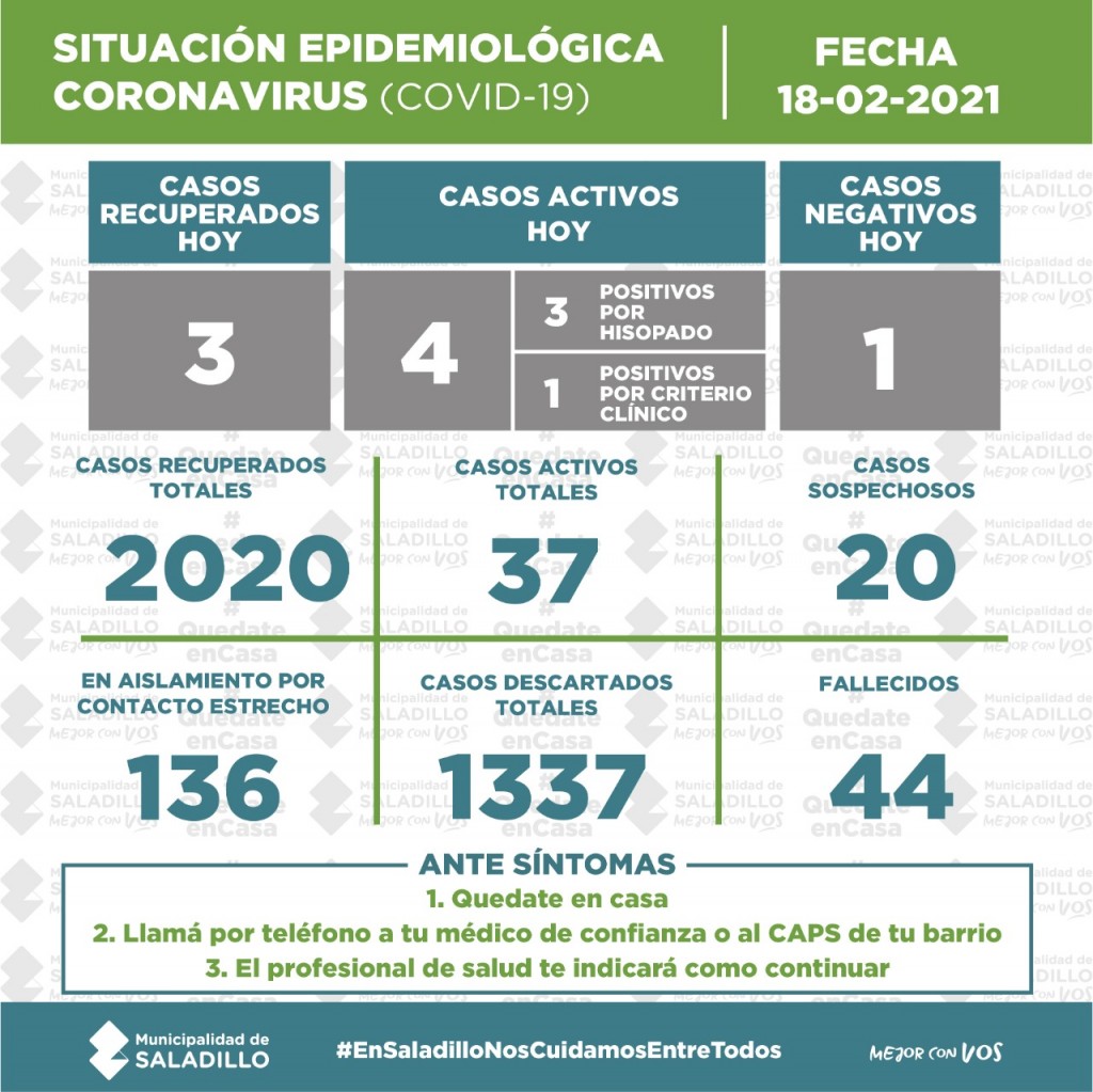SITUACIÓN EPIDEMIOLÓGICA EN SALADILLO AL 18/02/2021