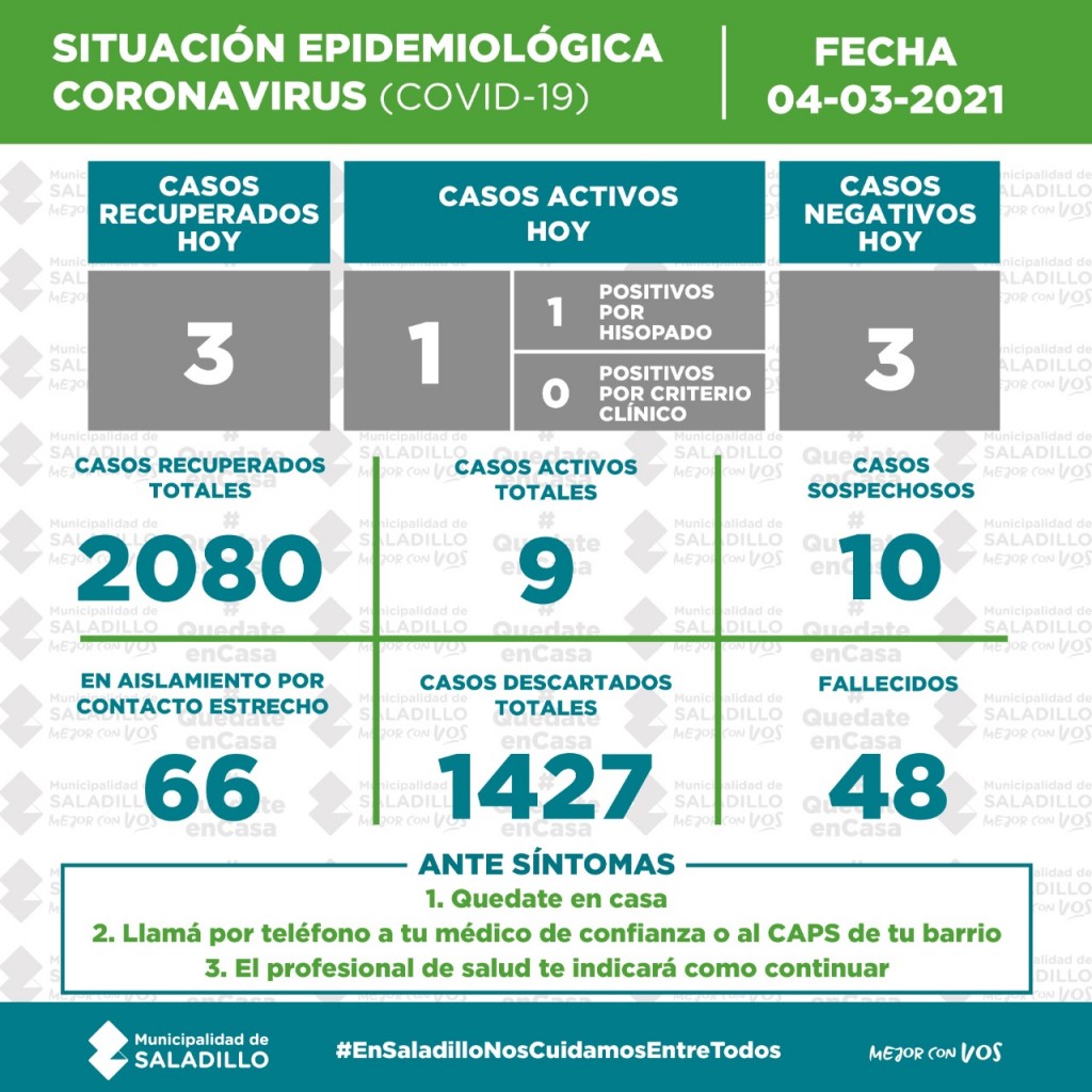 SITUACIÓN EPIDEMIOLÓGICA EN SALADILLO AL 04/03/2021