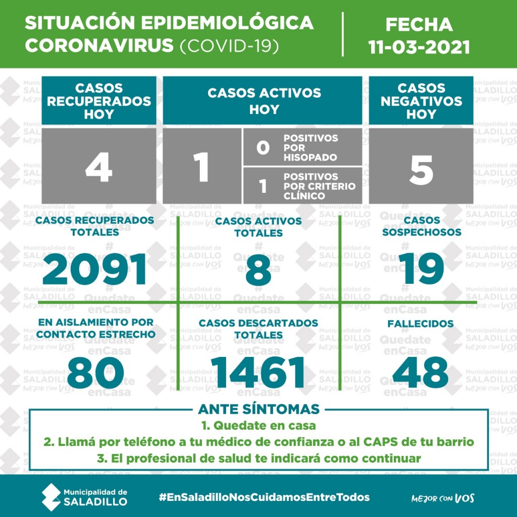 SITUACIÓN EPIDEMIOLÓGICA EN SALADILLO AL 11/03/2021