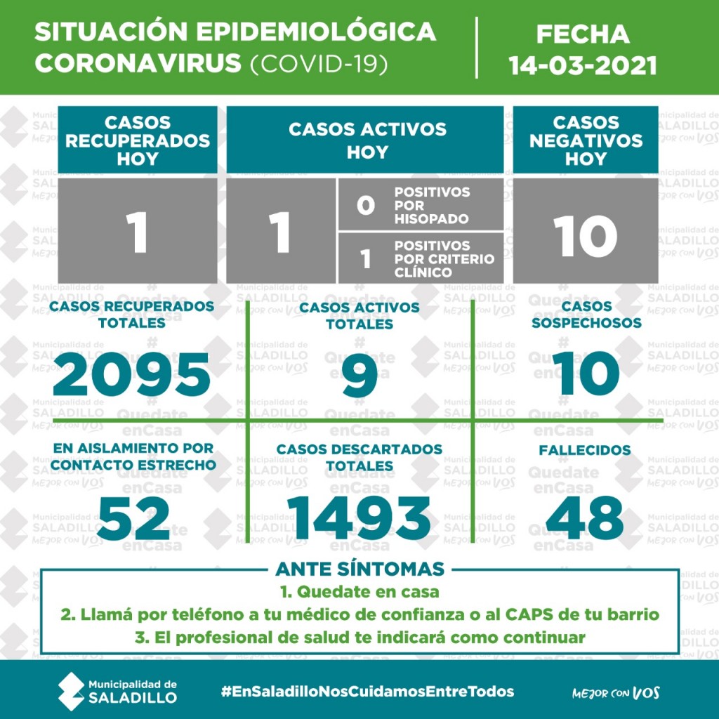 SITUACIÓN EPIDEMIOLÓGICA EN SALADILLO AL 14/03/2021