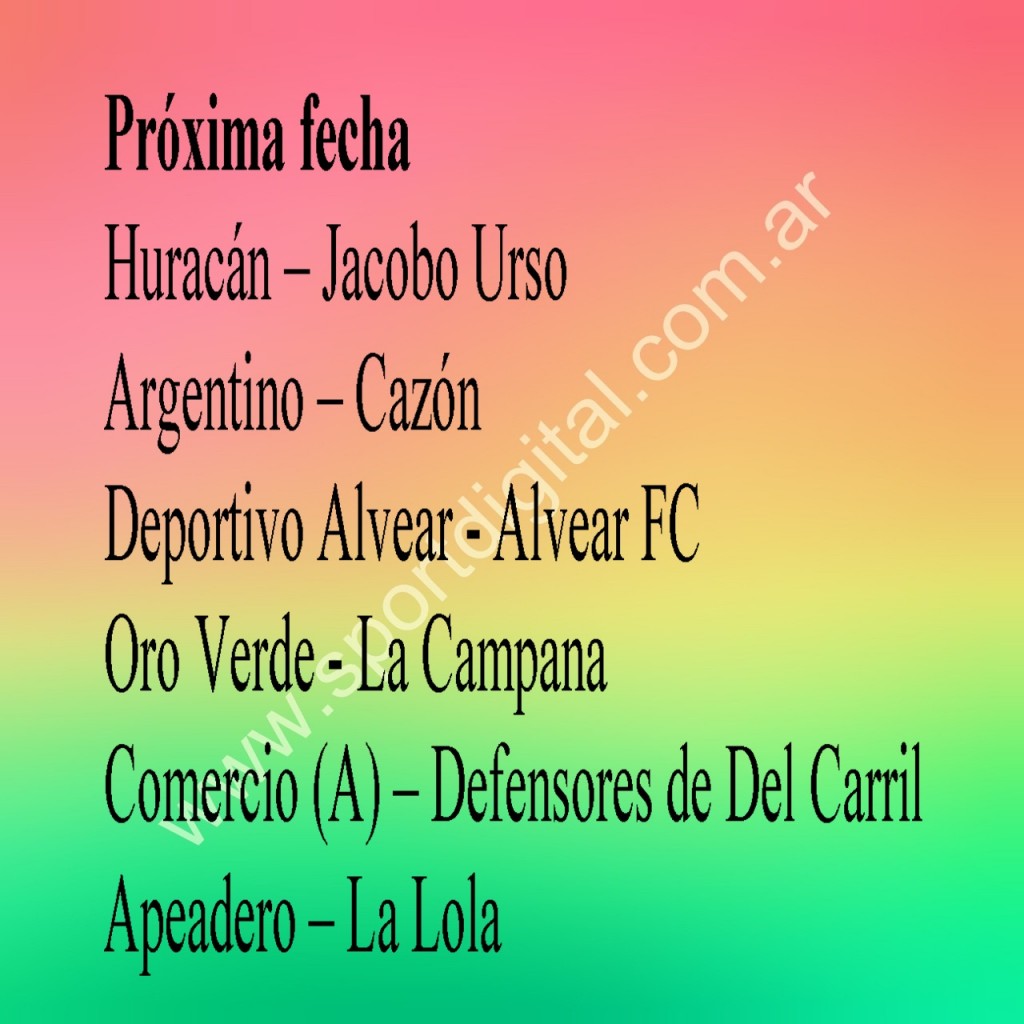 La 4ta fecha se juega entre jueves y viernes. El domingo se juega la 5ta.Fútbol: Atucha goleo a Deportivo Alvear 5 a 0 y La Lola le gano a Del Carril 2 a 0