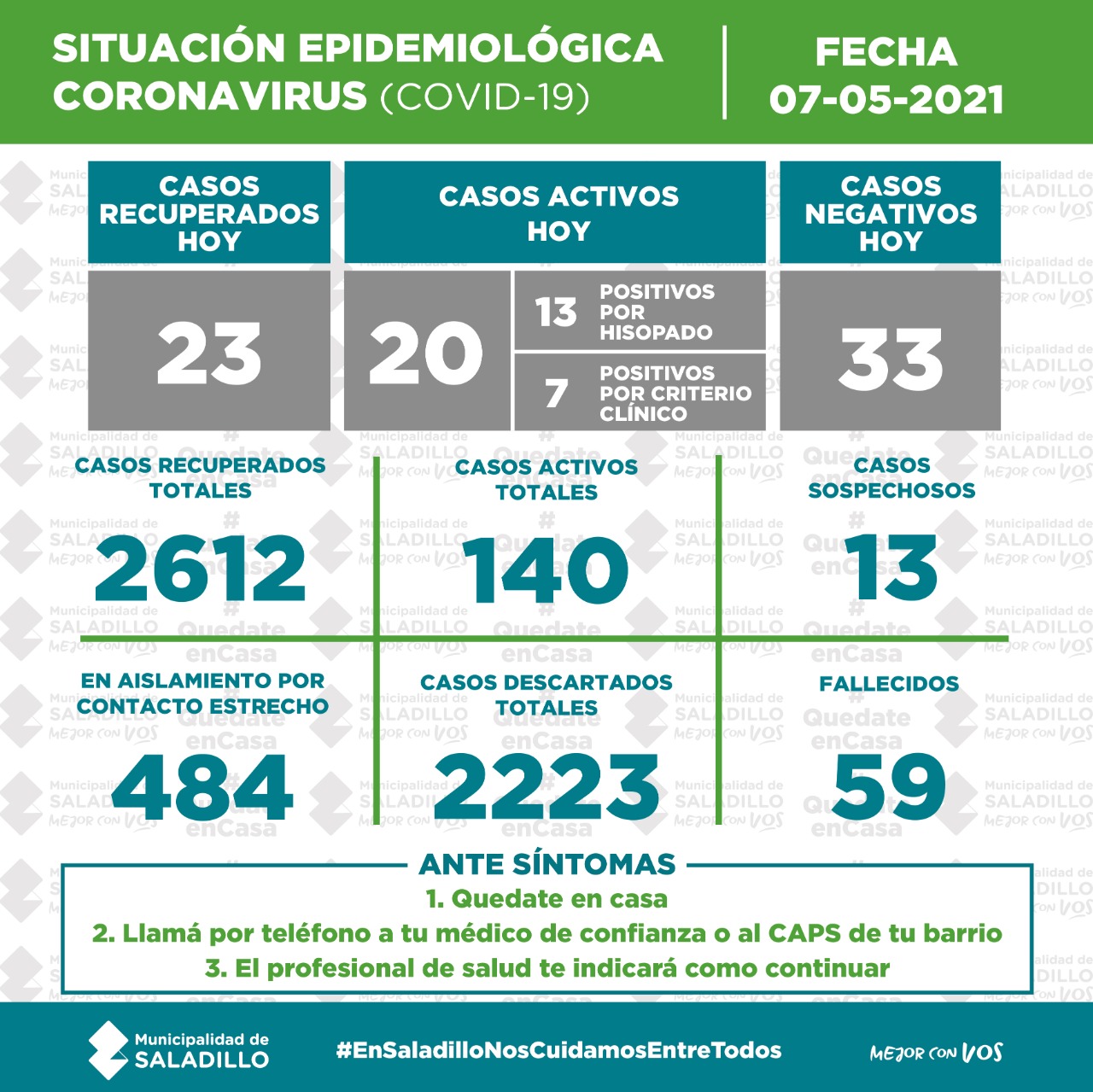 SITUACIÓN EPIDEMIOLÓGICA EN SALADILLO AL 07/05/2021