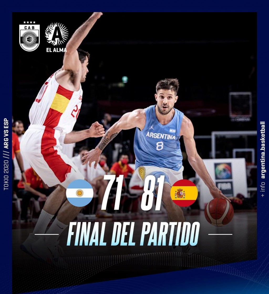 Si bien la selección Argentina de Básquet recuperó parte de su esencia en el juego, en especial en defensa, no le alcanzó ante el poderío de España, cayendo por  81-71 en los Juegos Olímpicos Tokio 2020. Esta fue segunda presentación olímpica y el domingo, a la 1.40, cerrará su participación en el grupo ante Japón, necesitando una abultada victoria para tener chances de ser uno de los dos mejores terceros, tarea complicada para los dirigidos por Sergio Hernández. El mejor de la Argentina ante España fue Laprovittola  con 27 puntos, mientras que el ganador jugó al ritmo de Ricky Rubio (26 pts).