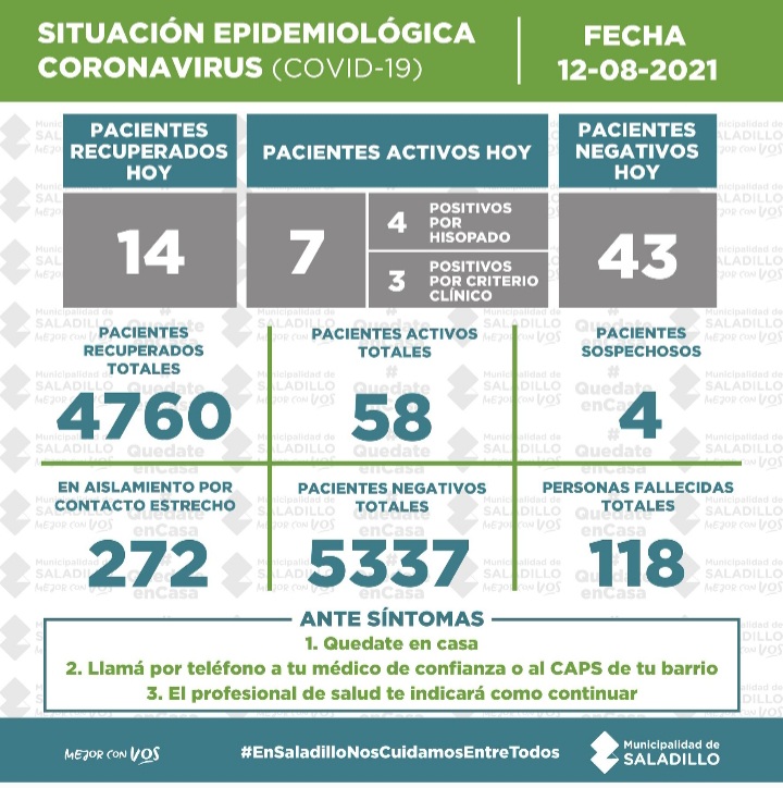 SITUACIÓN EPIDEMIOLÓGICA EN SALADILLO al 12/08/2021