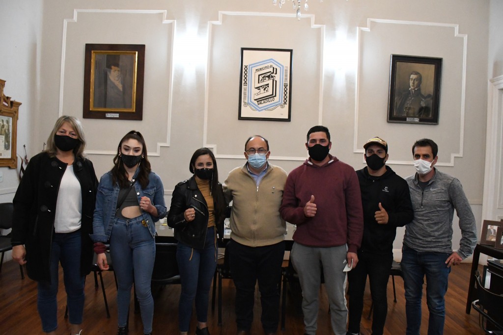 El Intendente Municipal Ing. José Luis Salomón junto al Subsecretario de Deportes Prof. Nicolás Tosca recibió en su despacho a la boxeadora saladillense Tamara Demarco luego de su pelea por el título. Junto a ella también a Martina Battista, Tomas Robledo y Pablo Battista.
