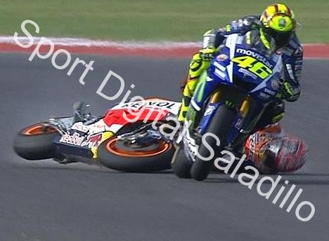 "Él me toca con el manillar y cae antes de que saque el pie. Para todos esto no es agradable. No es bonito acabar así. Hubiera sido bonito jugármela con Lorenzo. Márquez ha hecho una pésima actuación".