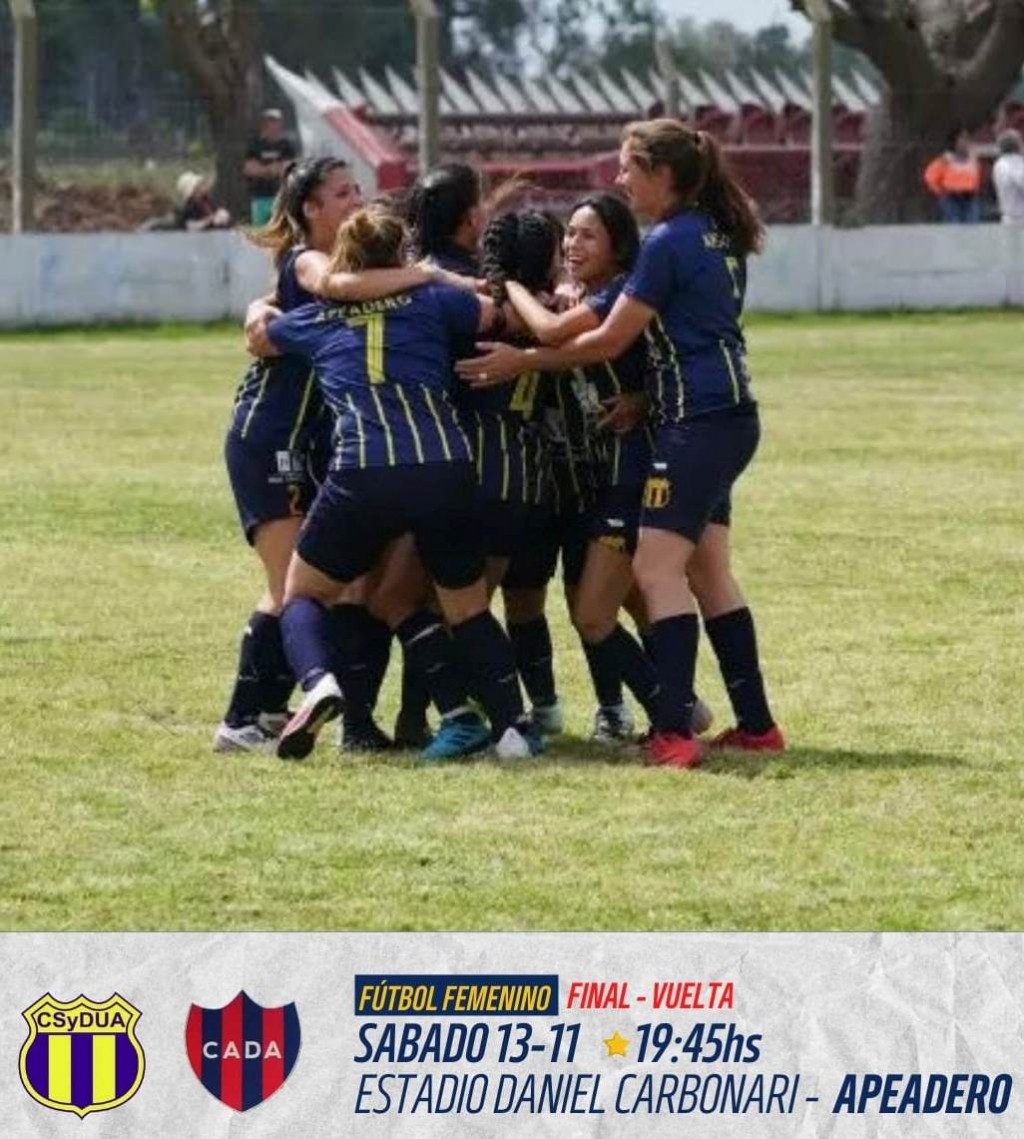 La final del campeonato femenino de Fútbol se desarrollara este sábado en el Estadio Daniel Carbonari. El local, Unión Apeadero recibirá a sus similares de Defensores de Atucha desde las 19,45 horas. Vale recordar que en el partido de “ida” se impuso Apeadero por 1 a 0.
