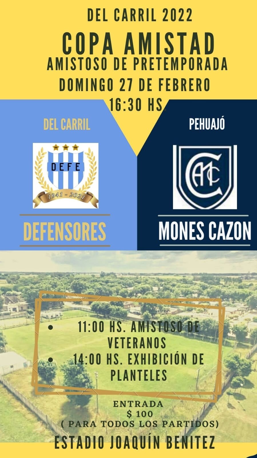 En la previa, desde las 11 jugaran los Veteranos y desde las 14 presentación de los planteles del carrilero.