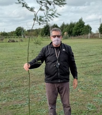 Los años pasaron y en medio de la pandemia, el excombatiente comenzó a ver el mundo de otra manera por lo que asumió un nuevo desafío y se propuso homenajear a cada soldado caído con una gota de vida: la plantación de un árbol. Foto: primer árbol plantado de la campaña que se convirtió en nacional e internacional, ya que ha sobrepasado las fronteras argentinas. Nota: Telenueve