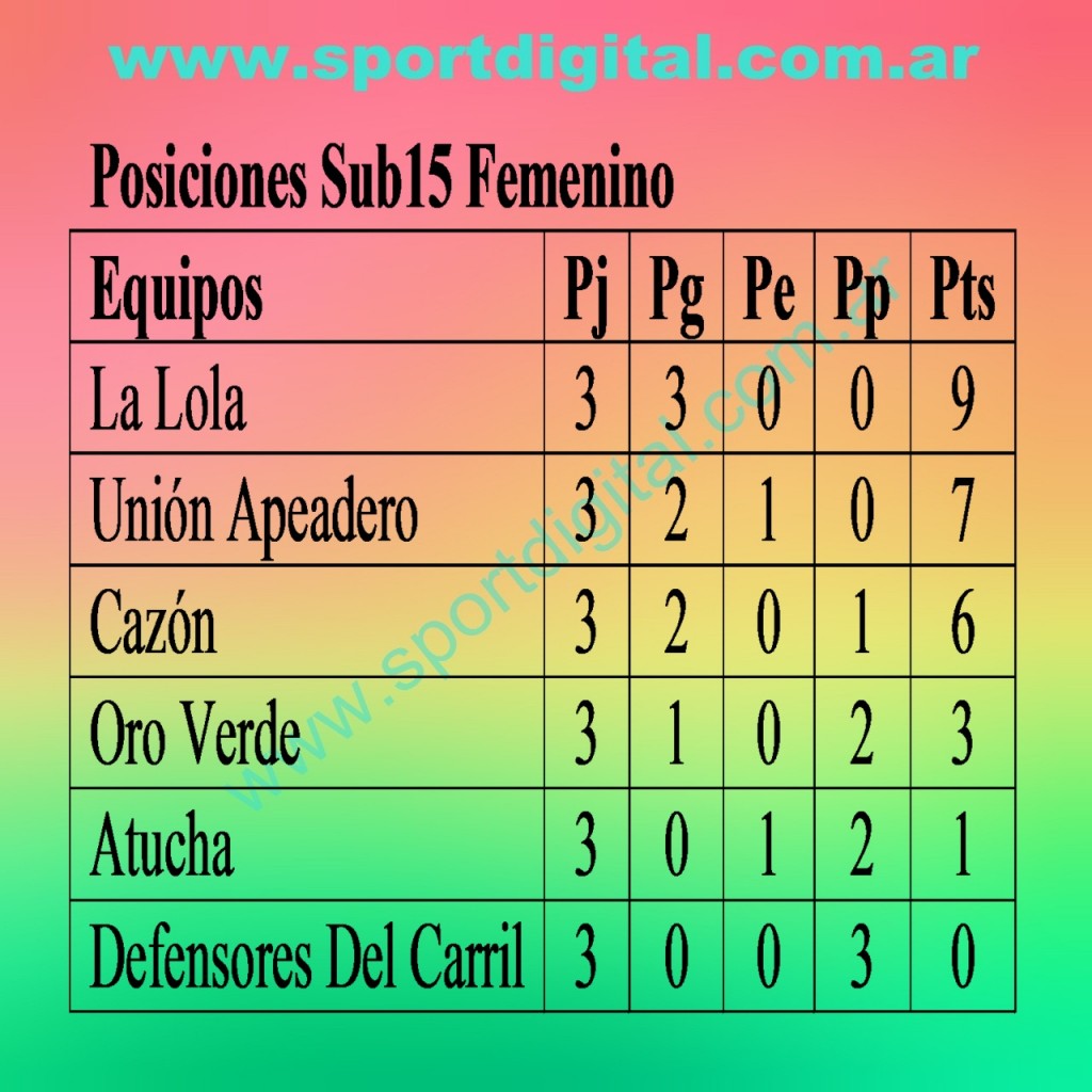 Fútbol: Resultados y Posiciones Sub15 Femenino