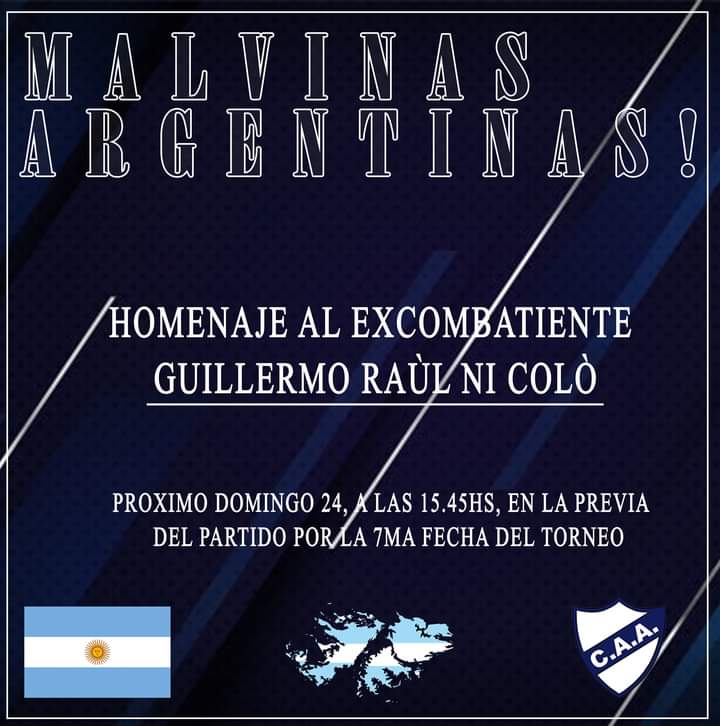El club Atlético Argentino realizará este domingo en el Estadio Adolfo Canteli, un homenaje a Guillermo Ni Coló por los 40 años del conflicto con Malvinas.