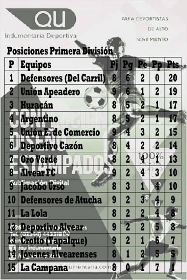 Luego el resto de la fecha se jugará el domingo en Saladillo, Del Carril, Alvear, Cazón y Saladillo Norte.