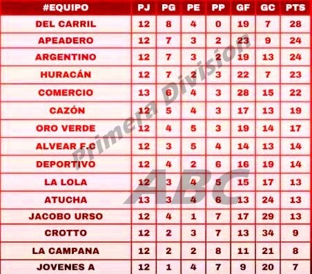 Se jugará este domingo en distintos estadios y localidades, la décima cuarta fecha del Torneo de Primera División. Entrando en las últimas dos jornadas de la fase regular, las miradas están centradas en los equipos que buscan clasificar dentro de los ocho primeros para poder seguir en carrera. Defensores de Del Carril, Unión Apeadero, Argentino, Huracán y Comercio  ya están en la siguiente fase.