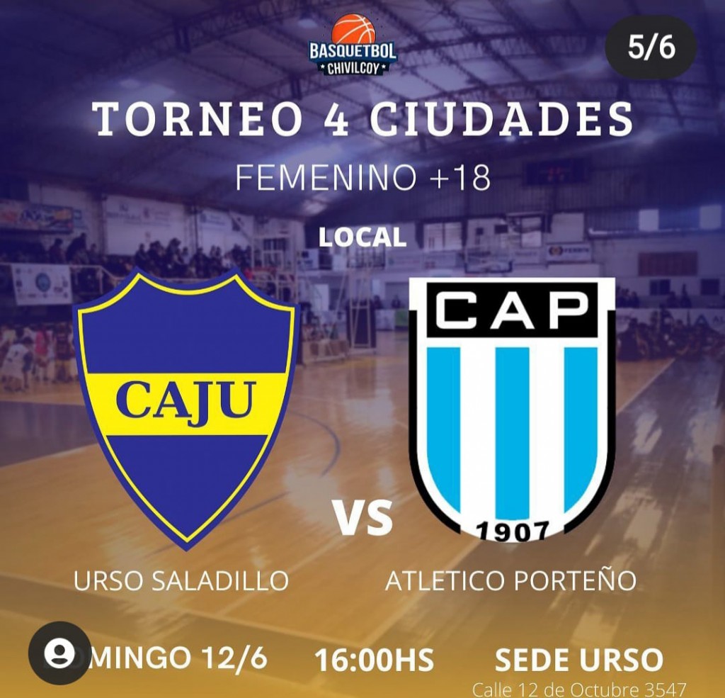 Por el Torneo “Cuatro Ciudades”, este domingo desde las 16 horas, el equipo femenino de Jacobo Urso (+ 18) recibirá en su estadio a su similar de Atlético Porteño de Chacabuco. Recordemos que el elenco femenino saladillense está haciendo sus primeras armas y buscando experiencia en el básquet zonal. En esta oportunidad enfrentará a un equipo con más años de trabajo y mayor experiencia.