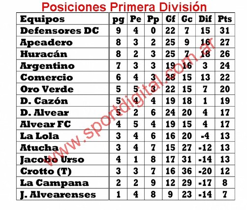 Defensores de Del Carril, Unión Apeadero, Huracán, Argentino y Comercio ya están clasificados, restando tres lugares. Oro Verde (20), Cazón (19), Alvear FC (17) y Deportivo Alvear (17), son los equipos que en esta fecha definirán su futuro en el torneo.