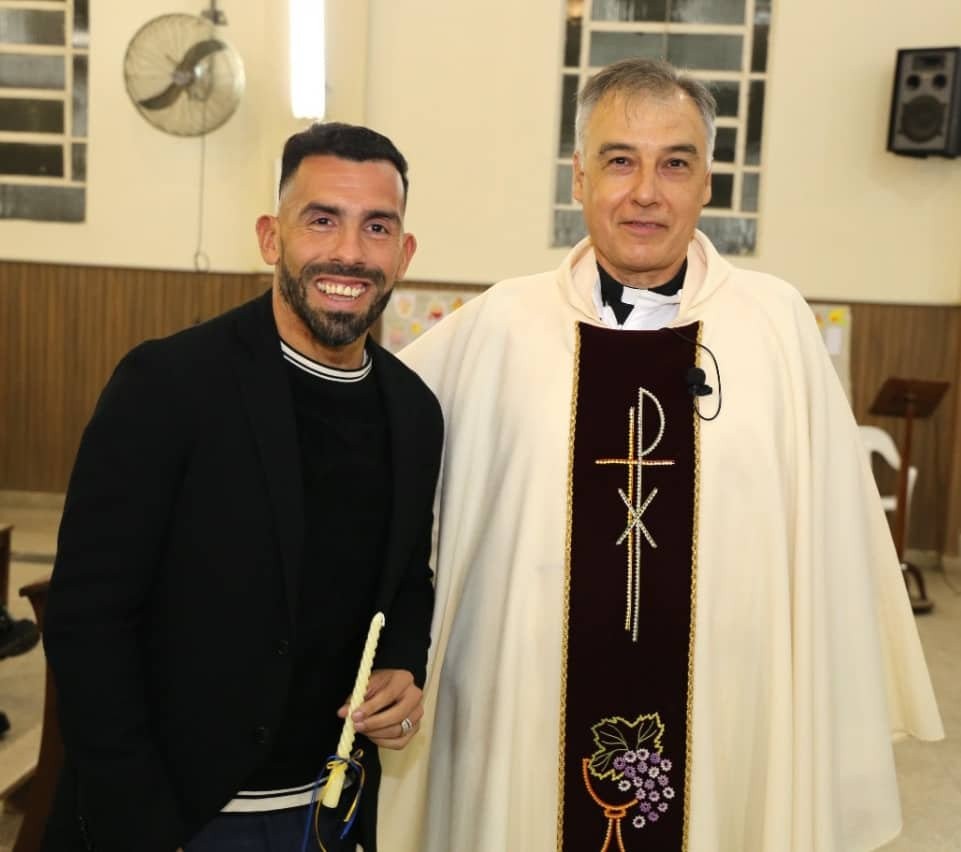 Carlitos y su esposa Vanesa fueron padrinos de un pequeño y participaron del bautismo en la Parroquia de Hersilia en la cual el Cura saladillense Gerardo Gorosito oficia como Párroco en la Parroquia Nuestra Señora de Las Nieves.