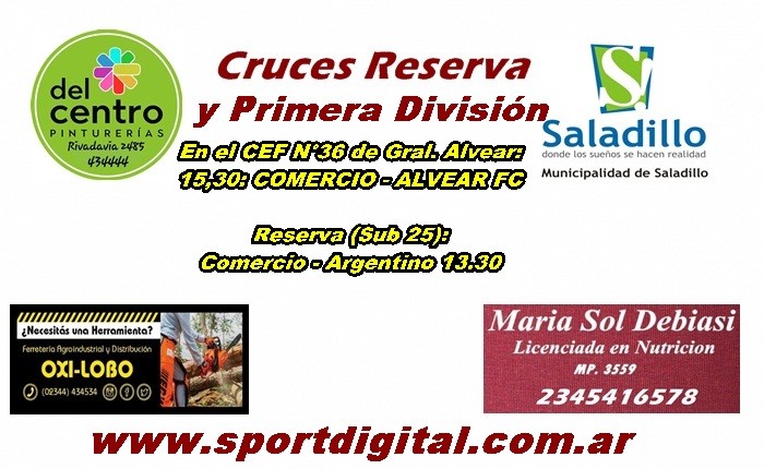 En tanto en Reserva (Sub 25), desde las 13,30 abriendo la jornada en el CEF Alvearense, jugarán Comercio (Alvear) con Argentino (Saladillo).