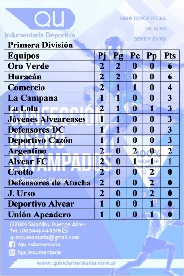 Oro Verde y Huracán encabezan las posiciones en primera con puntaje ideal, seis de seis. En Reserva, marcha puntero el equipo alvearense de Unión Empleados de Comercio.