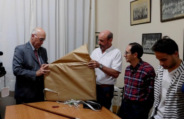 El Intendente Carlos Antonio Gorosito entrego, además de un hermoso cuadro, un aporte económico al club Atlético Huracán. El mandatario saladillense fue recibido por algunos integrantes de la comisión Directiva del de Huracán en su sede de la avenida Rivadavia. Allí hizo entrega de un obsequio consistente en un cuadro réplica del acceso de la antigua cancha de futbol que se emplazaba en la Plaza Falucho y además subsidio de 60 mil pesos: “con este aporte completamos lo comprometido que era por un total de 120 mil pesos, lo que será destinado obras de infraestructura en el predio de la institución. Felicito a la gente de Huracán por el esfuerzo de no hacerla desaparecer y de encarar importantes desafíos como lo fue el complejo del polideportivo de Rivadavia sur. Esta es también la despedida pero ahora ustedes deben fijarse el objetivo del centenario en 2019. Yo los voy a acompañar desde donde esté y ese día espero que me dejen hablar. Yo dejo de ser Intendente pero sigo comprometido con Saladillo y desde donde me toque estar seguiré tratando de ayudar”.