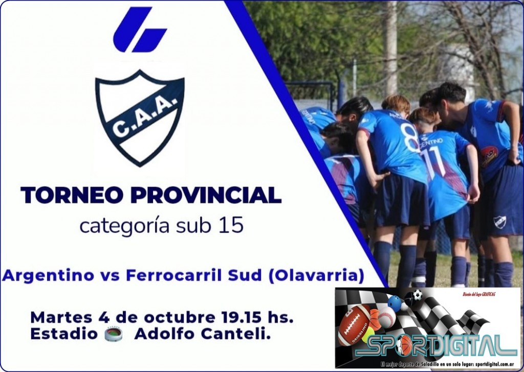 La categoría Sub15 del club Atlético Argentino de Saladillo jugará este martes el primer partido por el Torneo Provincial de Fútbol sub15 ante Ferrocarril Sud de Olavarría.