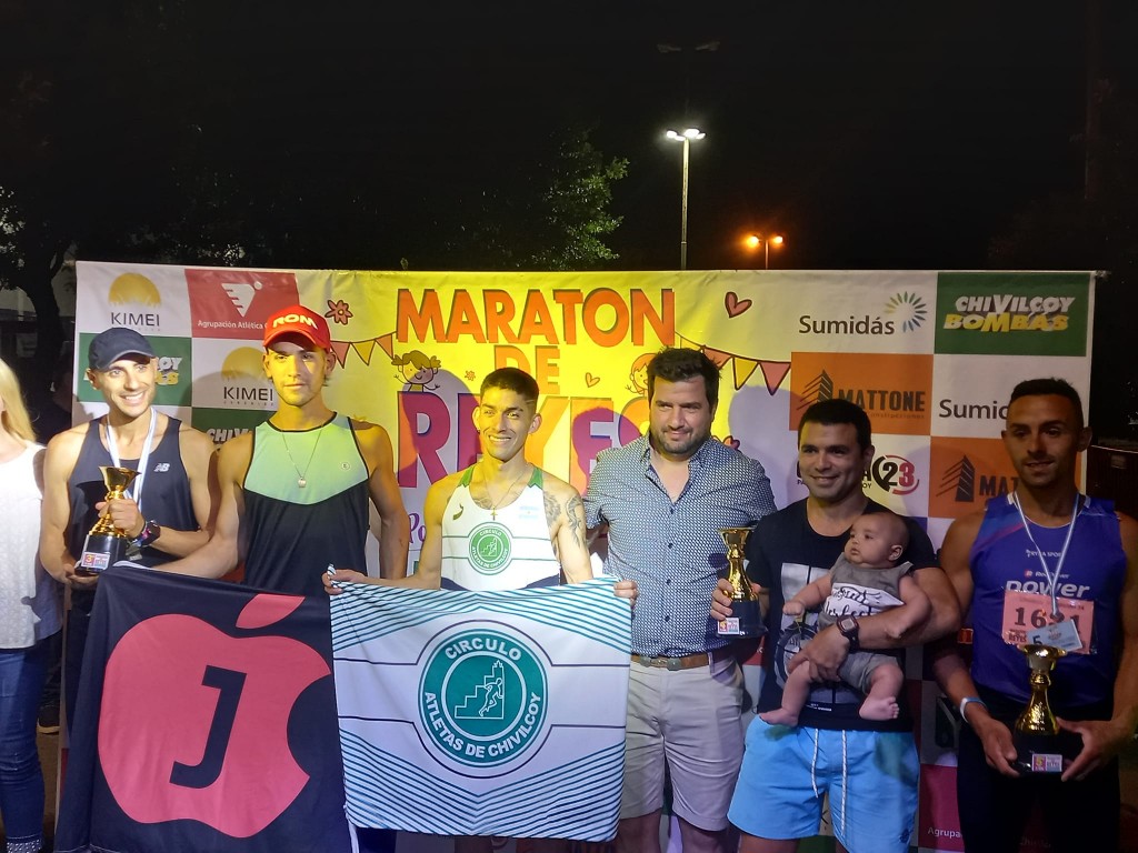 Se corrió por calles de la ciudad de Chivilcoy, organizado por la Agrupación Atlética local y el apoyo de la dirección de Deportes de la Municipalidad, la 35° edición del Maratón de Reyes, con un aporte muy interesante en cuanto a la participación de atletas, pero también con el público que se acercó a la Agrupación Atlética, punto de partida y de largada del Maratón, que tuvo antes las pruebas kid y la caminata, para luego largar la prueba competitiva, donde el saladillense Ezequiel Aguilera consiguió un cuarto y tranquilo lugar, según el mismo atleta señalaba: “Un largo domingo, ya que primero realice unos 18km de fondo a la mañana en Saladillo y a la tardecita fui a correr el Maratón de Reyes en Chivilcoy con la familia, como segundo entrenamiento del día o carrera. Obtuve un 4 puesto en la general, con nivel bueno en la punta, cosa que no estábamos como para estar a la altura de seguirlos. Hice mi carrera, la corrí bien cargadito, 29km en total por hoy no puedo pedirle más a mi cuerpo, a seguir sumando km”.