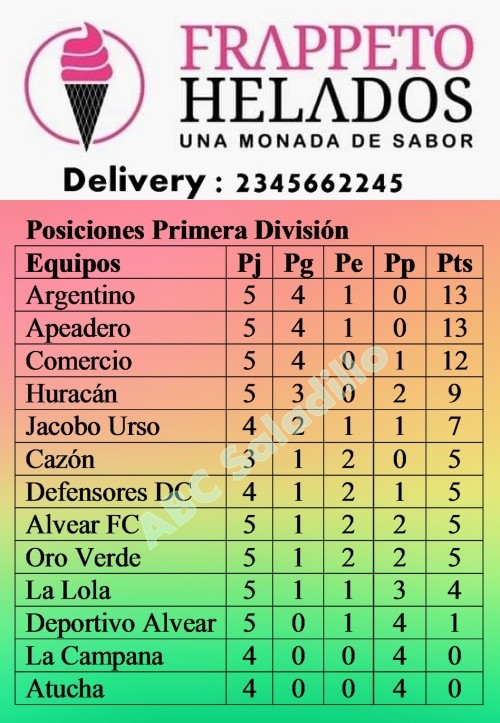 Fútbol: Argentino y Apeadero lideran en Primera División – Fixture sexta fecha - Posiciones
