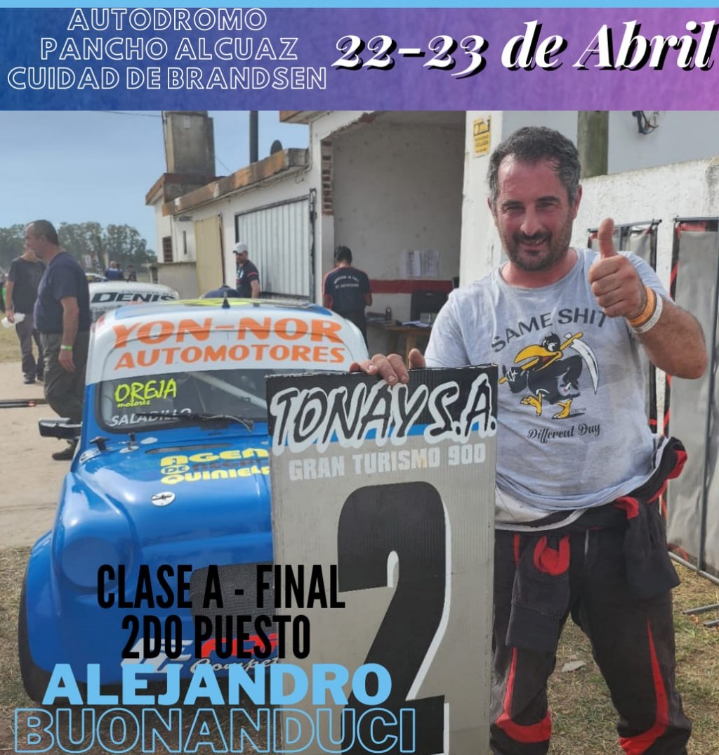 Por la segunda fecha del GT900, el saladillense Alejandro Buonanduci, Fiat 600, ocupó este domingo el segundo escalón del podio en la competencia que se desarrolló en el Autódromo Pancho Alcuaz de la ciudad de Brandsen.