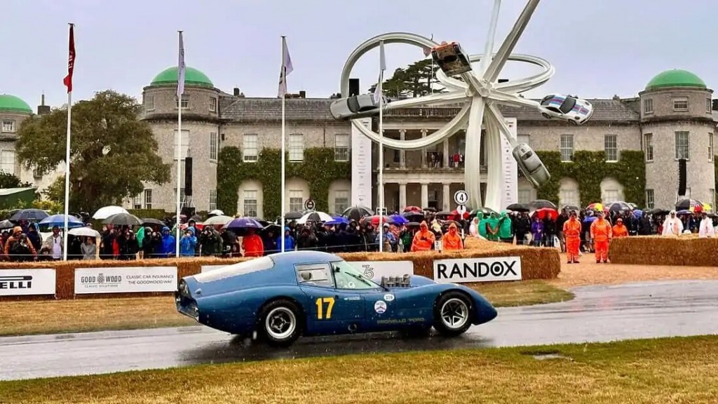 A pesar de la lluvia y la pista mojada, que obligó a moderar el ritmo de las pasadas, a las 5:50 en punto de la Argentina, el auto conducido por Ricardo Zeziola y acompañado por su hijo Gastón pasó frente al Castillo de Goodwood. Lo hizo acompañado por el Mazda 787B ganador de Le Mans y por un BMW M4 Safety Car, que cerró la exhibición del Batch 2.