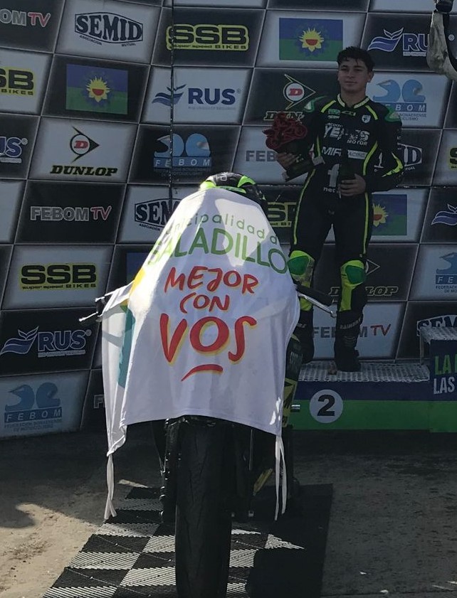 El joven piloto de Saladillo, Valentín Valor, se consolida en la punta del campeonato Bonaerense de Superbike 300 Pro, al ganar este domingo en el trazado de Dolores. Si bien en la bajada de bandera había finalizado segundo, detrás de Aytron Grassa, luego de la revisación técnica, el crédito de Saladillo se quedó con el primer lugar. El podio lo completaron Leandro Mulet y Facundo Casimiro. ¡Gran carrera de Valentín!