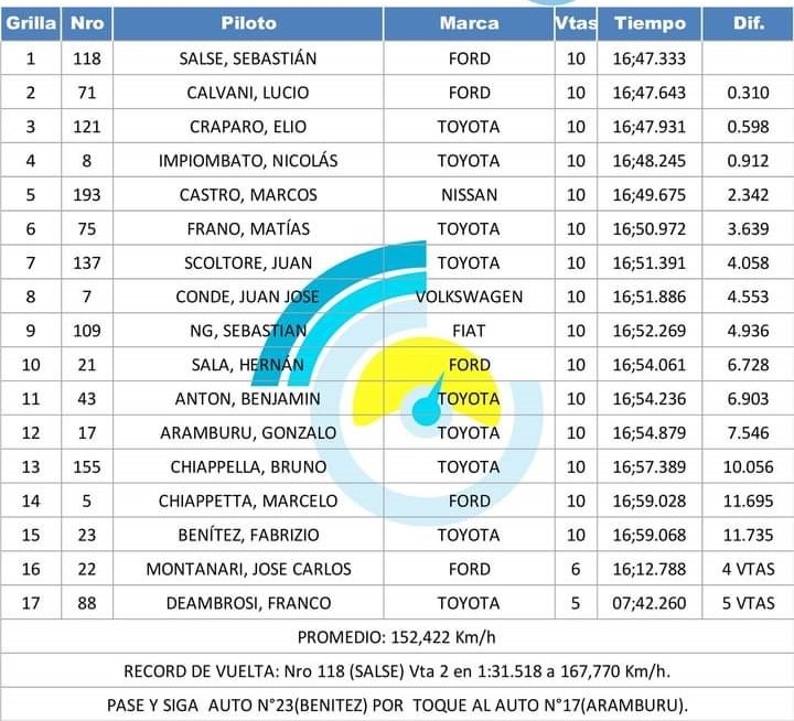 Por su parte, Elio Craparo, finalizó tercero con la unidad del RUS Med Team y se afirma en la cima del campeonato mientras que Nicolás Impiombato quedó cuarto en un trabajo destacado al igual que Marcos Castro quien completó su tarea en el quinto lugar.
