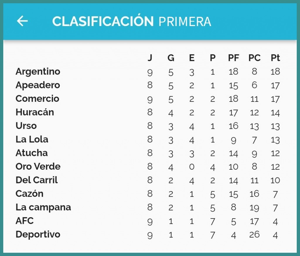 Ante la caída de Unión Apeadero con Comercio por 2/0 y la igualdad en Argentino y Urso, los de la banda azul pasaron al liderar el torneo Apertura de División.