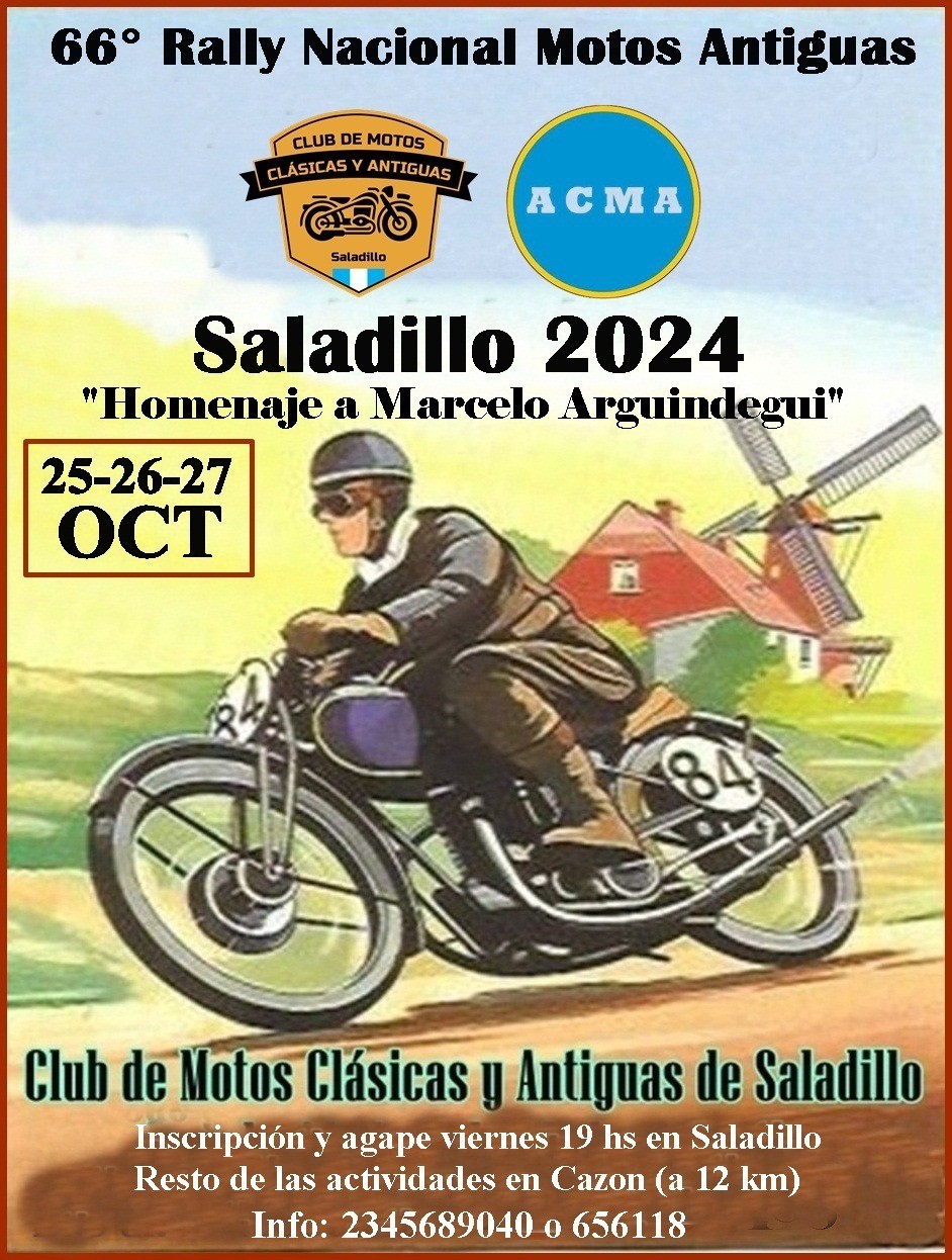 El club de Motos Clásicas y Antiguas de Saladillo recibió la aprobación para ser sede del 66° Rally Nacional de Motos Antiguas.