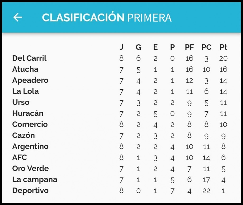 Resultados y Posiciones Fecha 8° - Delca en lo más alto de la tabla