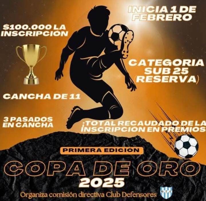 El club Defensores de Del Carril organiza la Primera Edición de la Copa de Oro Sub25 para equipos de fútbol en cancha de once.