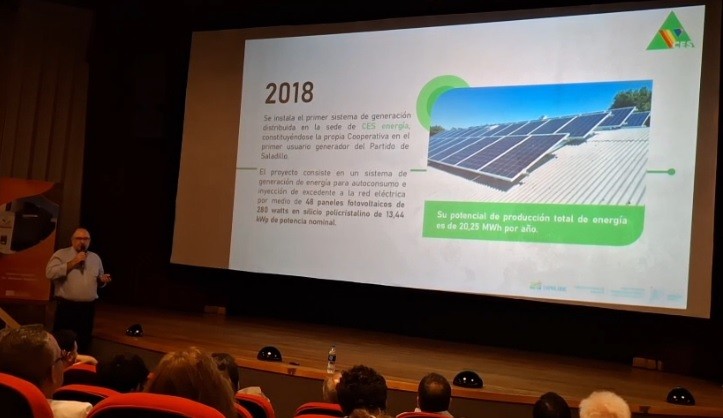 El Ingeniero Gabriel Storti, Jefe Técnico de CES Energía, fue el responsable de la presentación del Proyecto de la Cooperativa de Saladillo en un evento cuya agenda permitió exponer la experiencia en generación de energía renovable, oferta educativa en instalación de equipos de generación renovable y distribuidoras, antecedentes y requisitos para ser usuario generador.