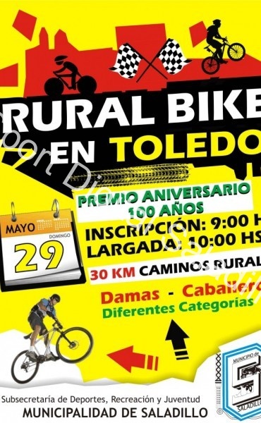 Se correrá este domingo el Gran Premio Aniversario de Toledo en Rural Bike. La inscripción estará abierta desde las 9, mientras que la largada esta prevista a partir de las 10. Serán treinta kilómetros por caminos rurales con diferentes categorías para Damas y Caballeros.