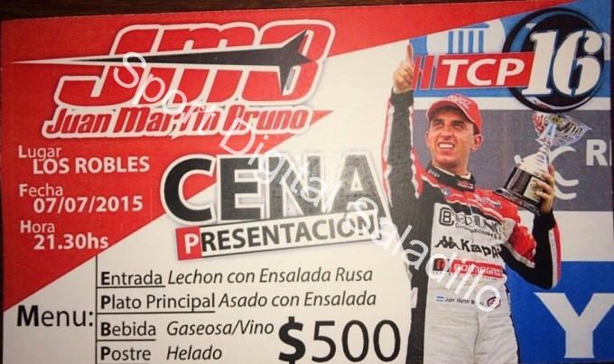 Juan Martín Bruno junto a su equipo de colaborares saladillenses realizará el próximo 7 de julio una cena show, donde estará compartiendo este inmejorable momento deportivo junto a toda la gente que lo acompaña y le brinda su apoyo. La misma se llevará a cabo en “Los Robles” a partir de las 21.30 horas.