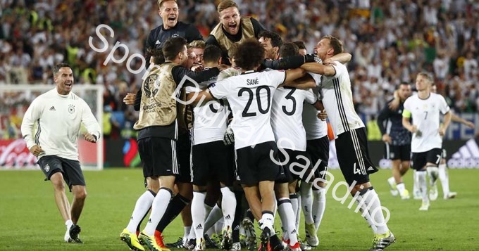En una tanda final de penales repleta de errores por parte de los dos equipos, los germanos se acabaron imponiendo por 6-5. Por la parte germana, erraron desde el punto fatídico tres de sus máximas estrellas: Ozil, Thomas Mueller y Bastian Schweinsteiger. En el lado italiano, fueron Simone Zaza, Graziano Pellè, Bonucci y Matteo Darmian los que no lograron batir el arco defendido por Manuel Neuer.