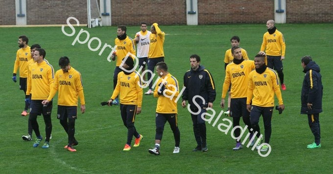 La formación que dispuso Barros Schelotto en la práctica de fútbol, por segundo día consecutivo, fue el siguiente: Agustín Orión; Gino Peruzzi, Daniel Díaz, Juan Insaurralde y Frank Fabra; Pablo Pérez, Leonardo Jara y Fernando Zuqui; Darío Benedetto, Carlos Tevez y Nicolás Lodeiro.